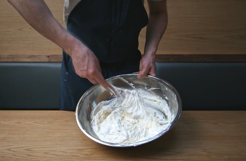 - Slowly fold sifted flour and salt into the ricotta mixture. Be careful not to overmix. Once the flour is combined, pour the batter into another mixing bowl and set aside. Clean the stand-up mixer.
