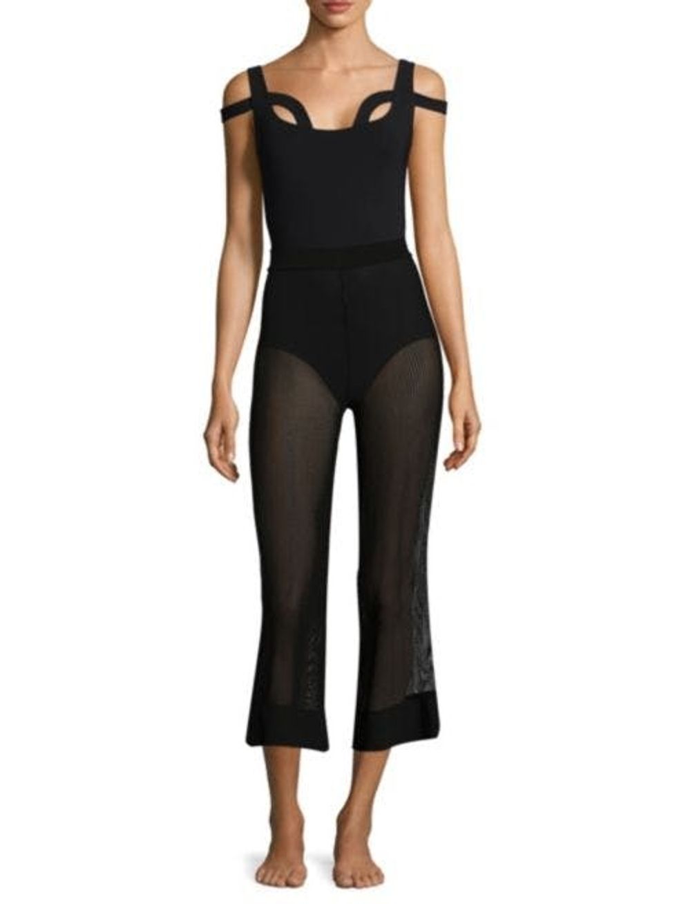 Cover up in streamlined pants that don’t compete with belted details. Brit + Co Pick: Chiara Boni La Petite Robe Mesh Coverup Pants ($330)
