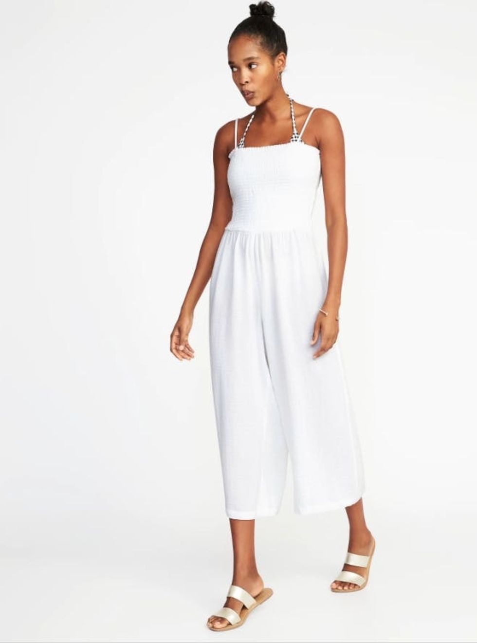 A smocked jumpsuit pairs well with suits built for water-sport shenanigans. Brit + Co Pick: Old Navy Smocked Wide-Leg Jumpsuit ($35)