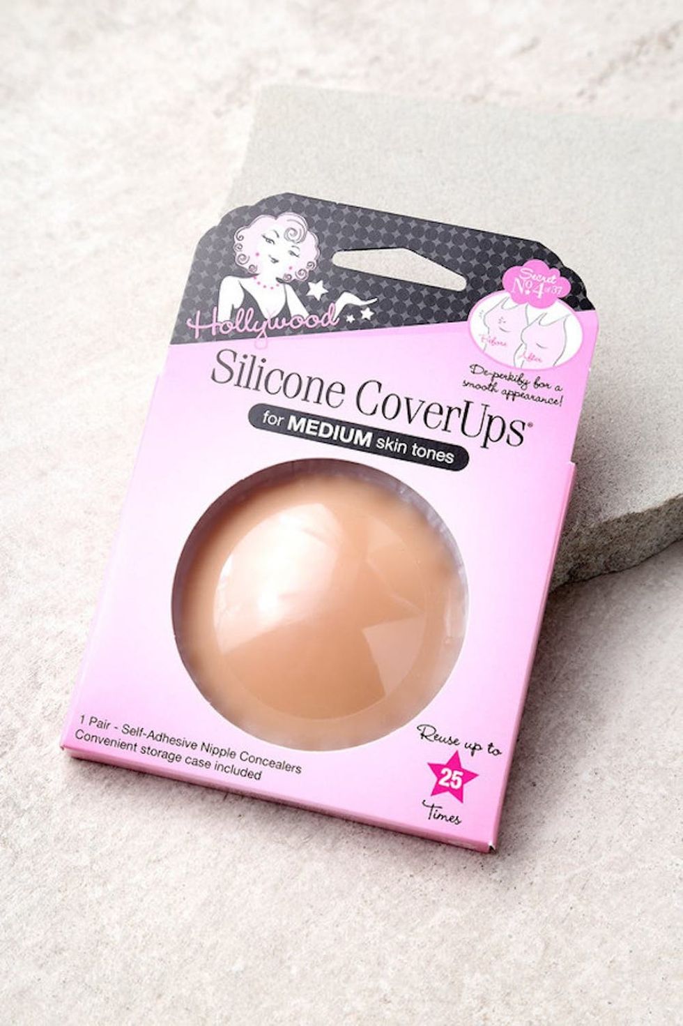 7. Under an Open-Back Top or Dress: “There are only a few options when it comes to an open back dress or top. Stickies can give you some lift, but make sure that they are placed well! Also, be careful, because sweat and makeup can affect the glue and make them less sticky.” Lecigne also mentions that you should, “always check to see that you don’t have any allergies to the glue or silicone used in the adhesive, and when applying, lift your arm up to get the best coverage and support. If you really need bra support, you can have your strapless bra professionally sewn into your top or dress. This works best if the top is form fitting.” Brit + Co Pick: Hollywood Silicone CoverUps ($13)