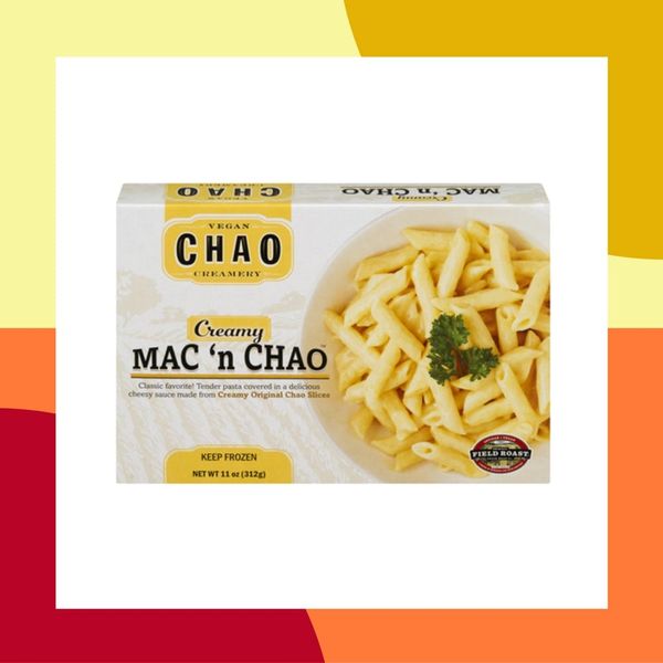 Field Roast’s Chao is one of our favorite non-dairy cheeses. It has a smooth texture and actually melts, and it’s what gives this vegan mac and cheese such a creamy texture. It’s made from fermented Chao tofu, coconut oil, and potato starch (the trio that’s responsible for the texture), and seasoned with nutritional yeast (the go-to vegan “cheese” flavor), hot sauce, and spices. This mac and cheese gets baked or microwaved from frozen (we microwaved it) and results in silky noodles covered in a smooth, not separated or greasy, non-dairy sauce. We’d happily snack on this any day of the week.