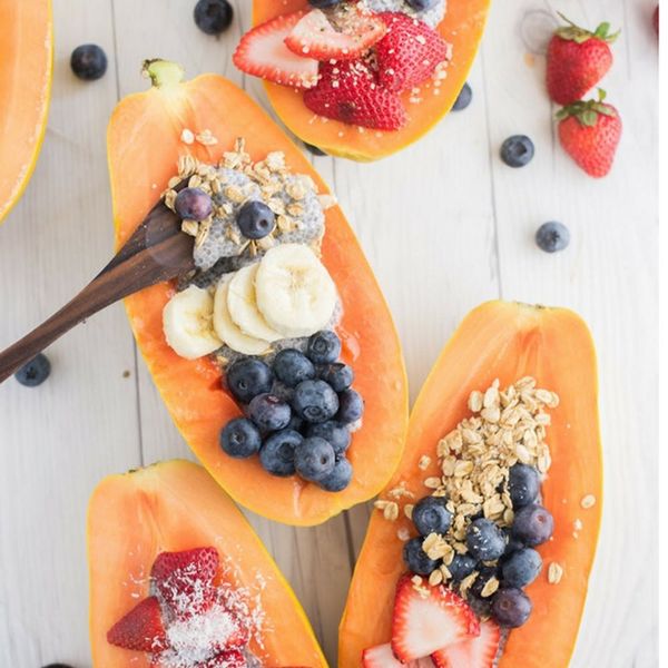Papaya Boats and Chia Pudding: Can't hop on a plane to the tropics on a whim? Give yourself a little taste of paradise with berry and chia pudding-filled papaya boats. That’s almost just as good. (Photo via Brit + Co)