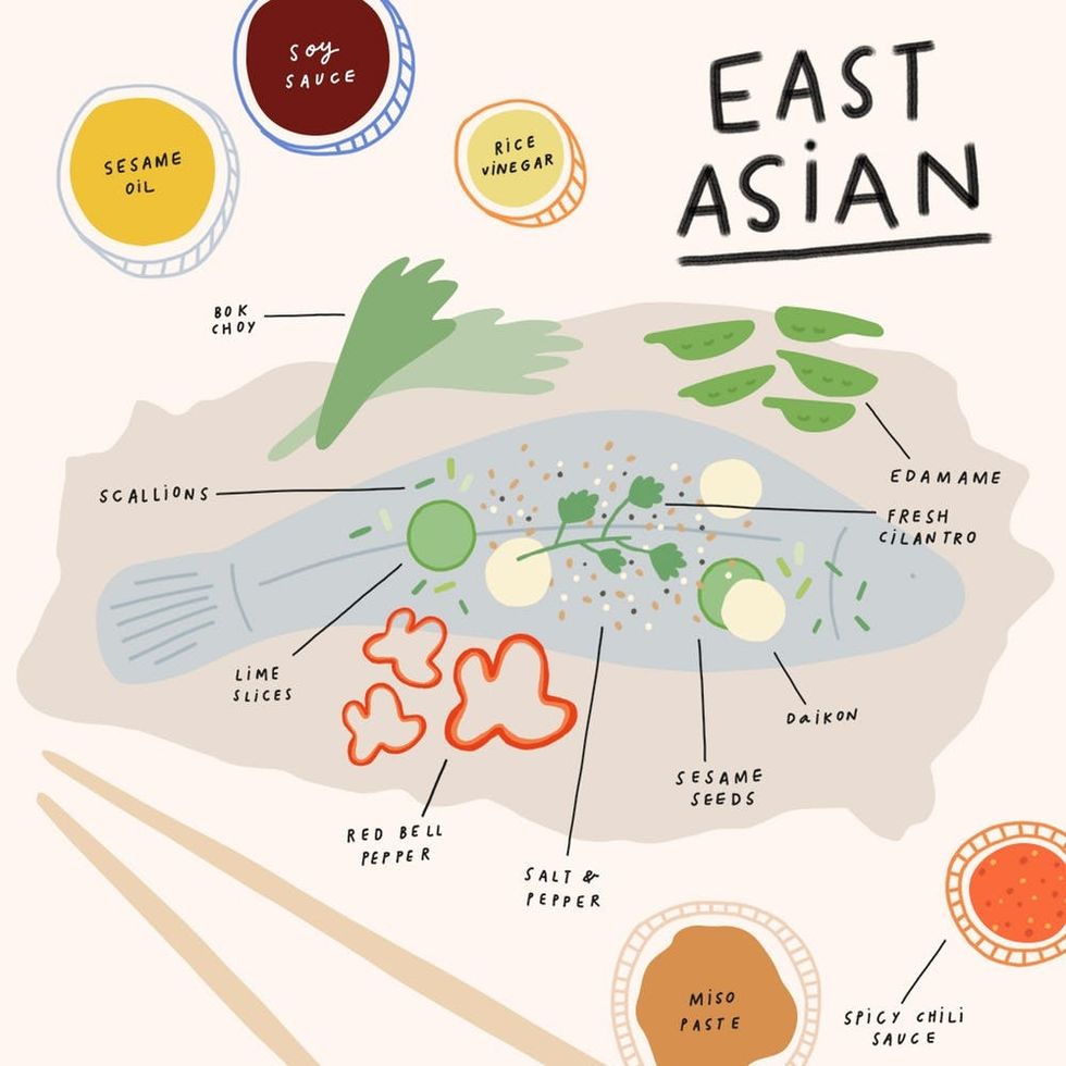 - Deck out your fish with your chosen ingredients including your seasoning, toppings, and drizzles.