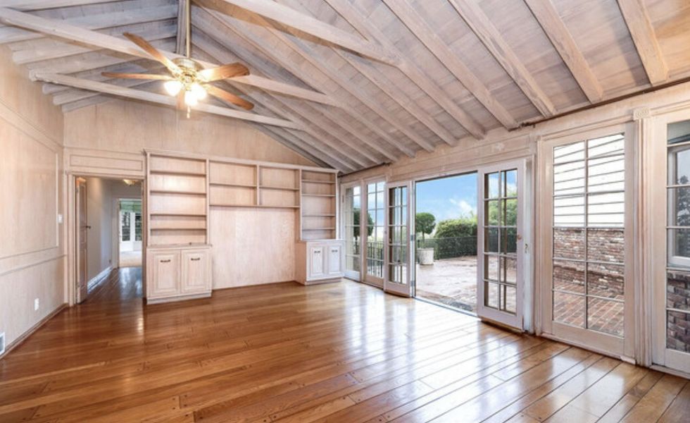 The fireplaces throughout the Beverly Hills home were restored, the ceiling stripped of its old paint, and the decor infused with a calming neutral earthy palette that grounds the design.