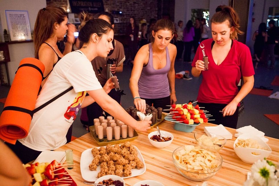 Before we started flexing our downward dog muscles, attendees stocked up on brand new yoga mats, headbands, towels, water bottles and other fun goodies.