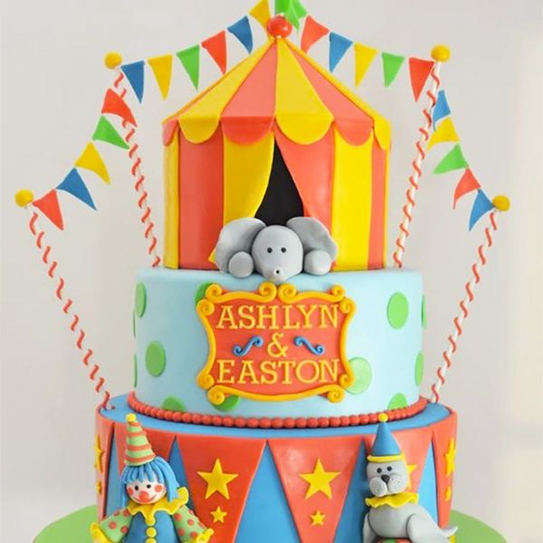 6. Circus Cake: Having a circus-themed party? Pitch that pin-striped tent right on top of the cake, because Barnum & Bailey’s got nothing on your twins. (via Jsouth82)