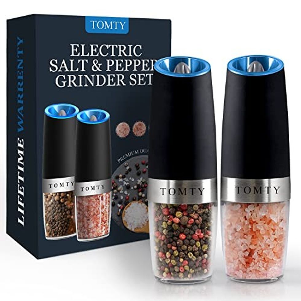 There's something noticeably tastier about using freshly ground salt and pepper. It adds a freshness to any dish, and these salt and pepper grinders make the experience feel futuristic with the blue LED lights and automatic grind. It's easy to adjust the ceramic grinder burr to your preferred coarseness.