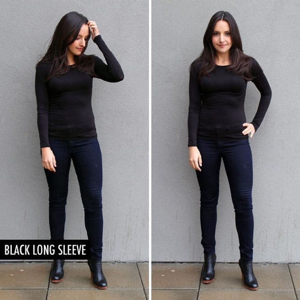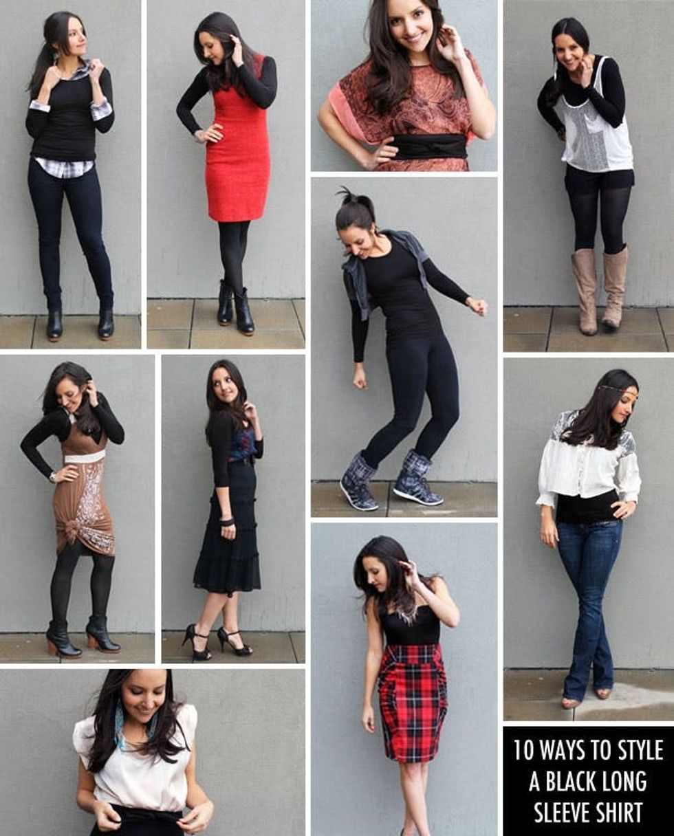 Oh hey 10 Ways to Style Series, did you miss us? It’s time to get back into the stylish swing of things here at Brit HQ, and we’re all about winter fashion. The best way to stay warm in the winter? Layer up, of course. And what better base for layering than a basic black long sleeve? Here are 10 ways to style it, including a hack that turns it into a high-waisted skirt!