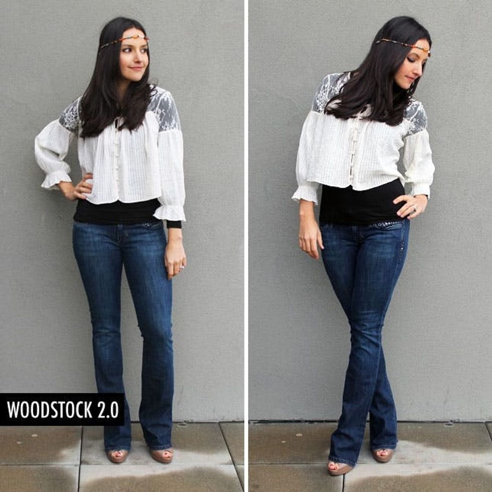 10. Woodstock 2.0: As children of parents who loved Woodstock, we love finding bohemian tops and necklaces and co-opting them for modern style. Layer a peasant top over a long sleeve, pair with jeans, heels, and a necklace (that we turned into a headband!) for city-ready hippie-inspired style.