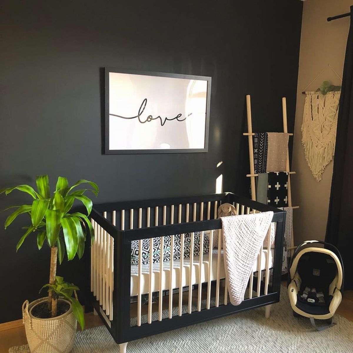 When deciding on a color scheme for a nursery, pretty pastel hues like pink, blue, or “gender-neutral” yellow are probably what come to mind first. Likely not on the list? Black. But contrary to conventional wisdom, black is turning out to be one of the trendiest colors for baby’s first bedroom, and we’re blown away at how many cool, creative interpretations there are. Looking for some inspo? Check out these Insta picks that prove any decor style can work with the moody hue, from the boho rattan look to feminine art deco.
