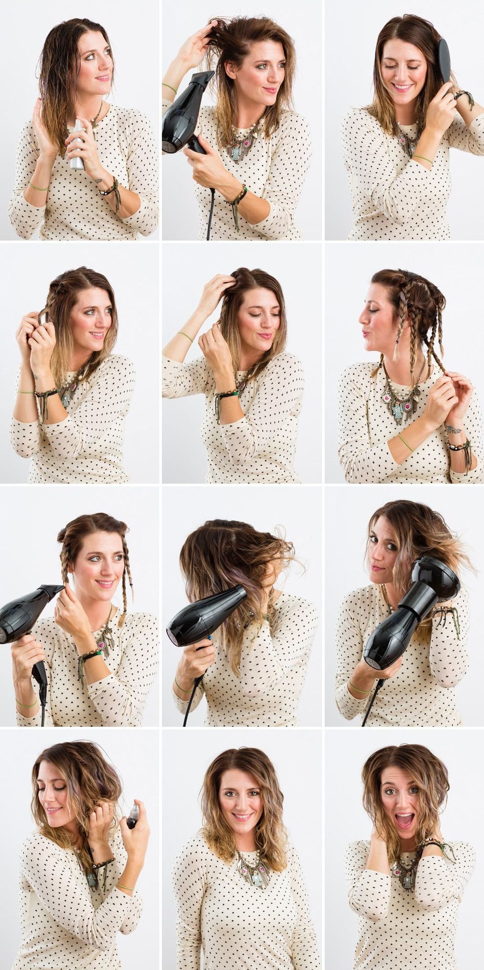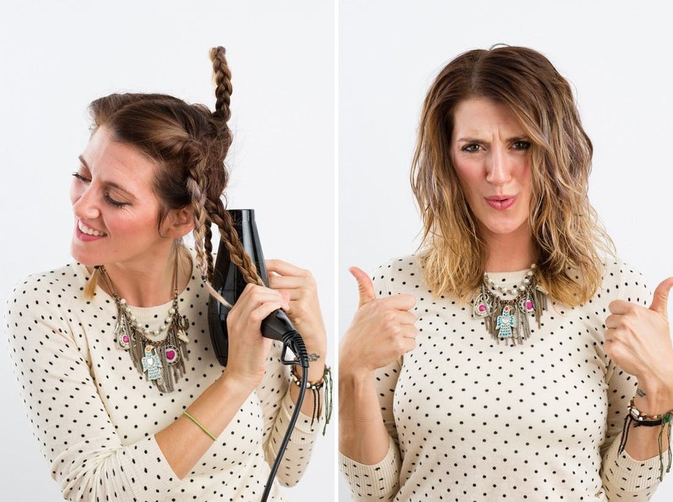 Use Braids and a Nozzle: For us gals with super straight hair, here is a fun little hack to get a little wave action using braids and the funny little flat nozzle with your blow dryer.