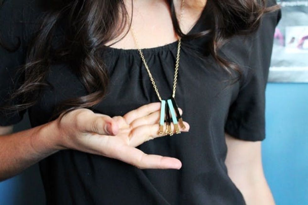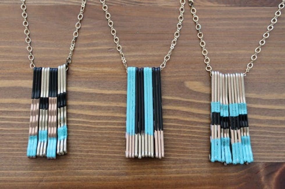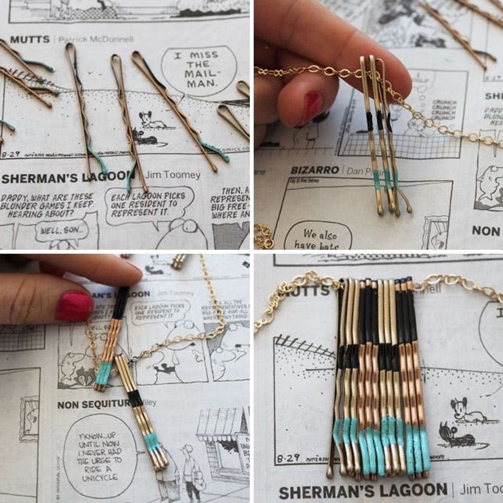 Need a new pendant or statement necklace for New Year’s Eve, or any other eve for that matter? Grab some gold bobby pins, nail polish, an old necklace chain, and get to work!