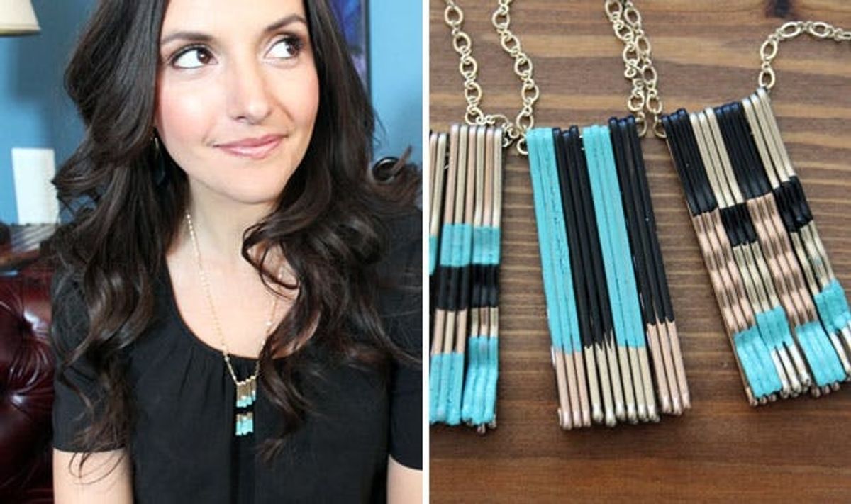 Need a new pendant or statement necklace for New Year’s Eve, or any other eve for that matter? Grab some gold bobby pins, nail polish, an old necklace chain, and get to work!