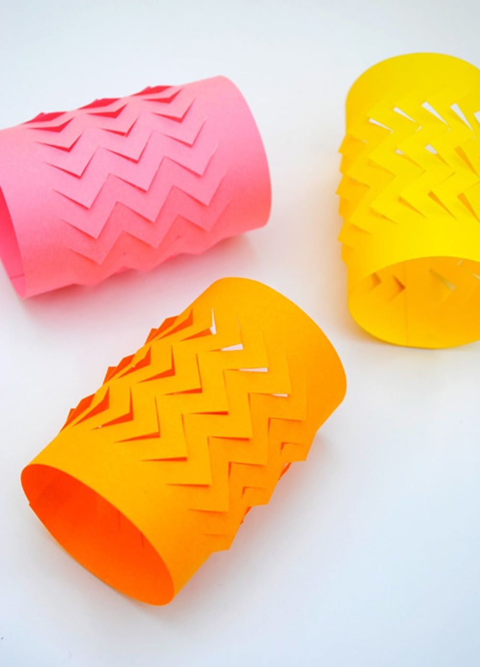 12. DIY Paper Luminaries: These bright and colorful paper lanters are easy to slip around a tea light. (via Minieco)
