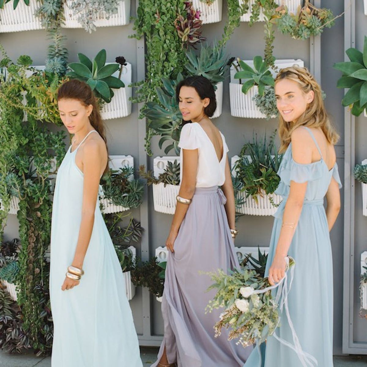 12. Mismatched Fashion: It’s all about variety when it comes to boho bridesmaids. Mix up colors and styles for a non-traditional look. (Photo via Krista Mason / Dresses by Joanna August)