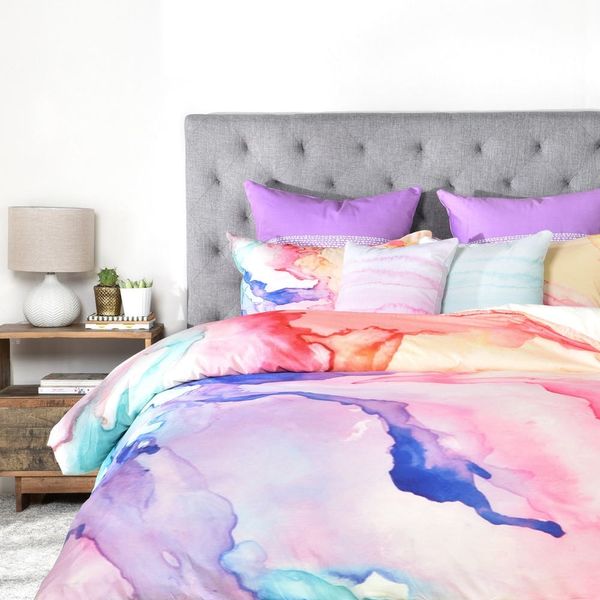 11. DENY Designs Cayena Blanca Blossom Pastel Duvet Cover Collection ($139+): Embark on a visual trip with this vibrantly hued, floral pattern. Its pretty whimsical-watercolors print will instantly transform your bedroom space into a garden-esque wonderland.