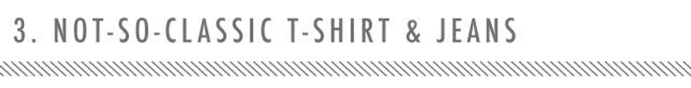 A t-shirt and jeans outfit doesn’t mean white on top and blue on the bottom. Go for bright red pants with a cheeky t-shirt and call it a day. And yes, that t-shirt does say “CO.” ;)