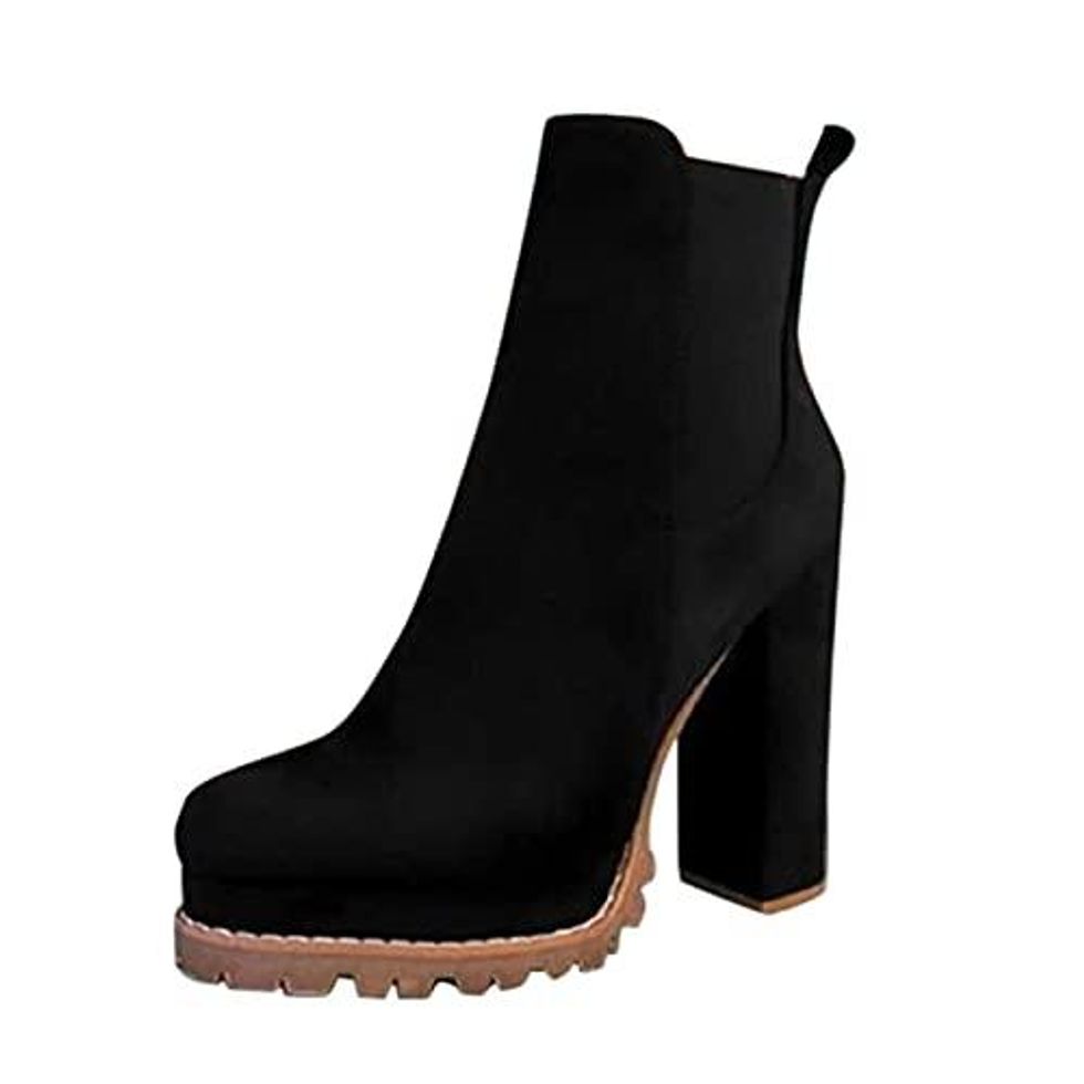 If you're looking for an elevated classic to add to your wardrobe, these chunky heel ankle boots are the perfect option. The sky high heel makes them dressier than your average ankle boot, but the timeless black color means you can wear them with anything.
