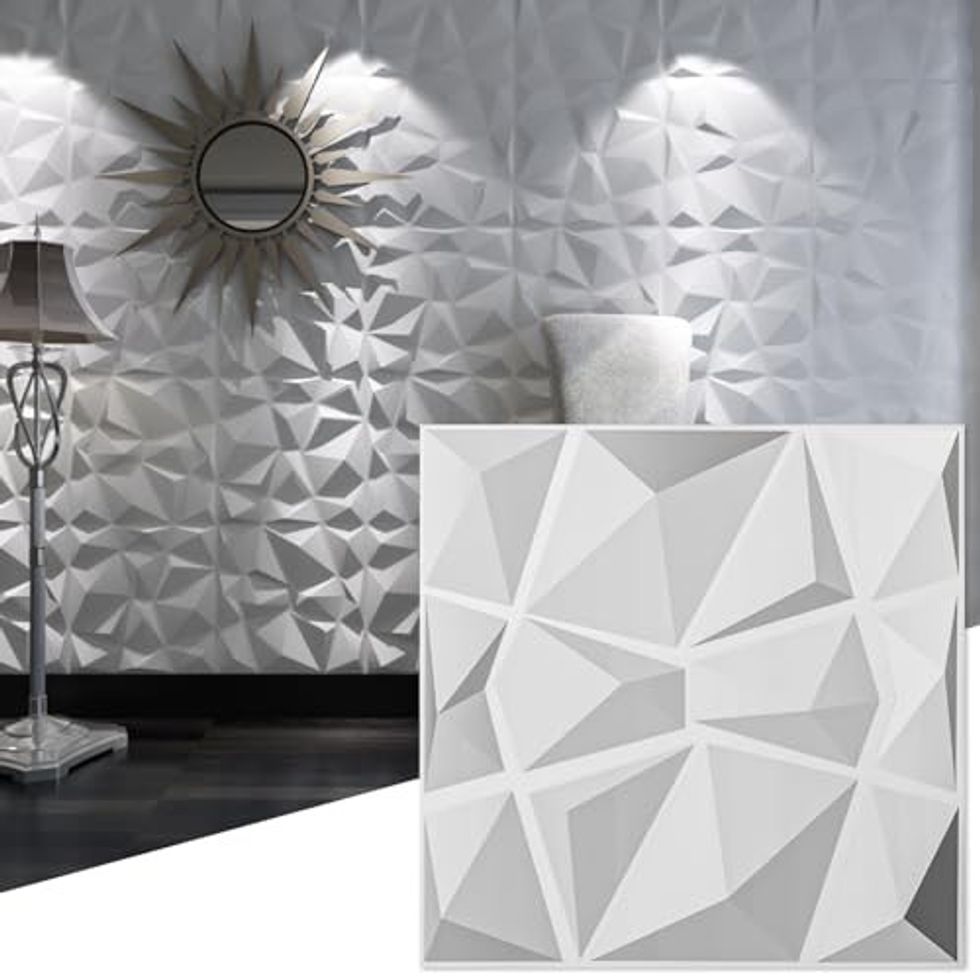 Transform your walls with Art3d Decorative 3D Wall Panels. This pack of 12 tiles, covering 32 sq ft, features a diamond design made from plant fiber, perfect for creating a stunning accent wall in any room.