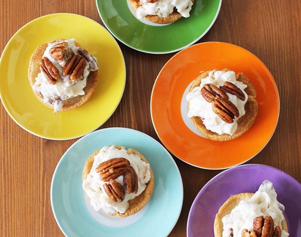 Can you guess what holiday it is today? If you said National Pecan Pie Day, you’d be correct. And since you know we loooove food holidays here at Brit + Co, we decided to combine ice cream month and pecan pie day, and spike it (obviously). So, we present Bourbon Pecan Pice Ice Cream served in mini pie shells. Seriously, make this right now. What are you waiting for?