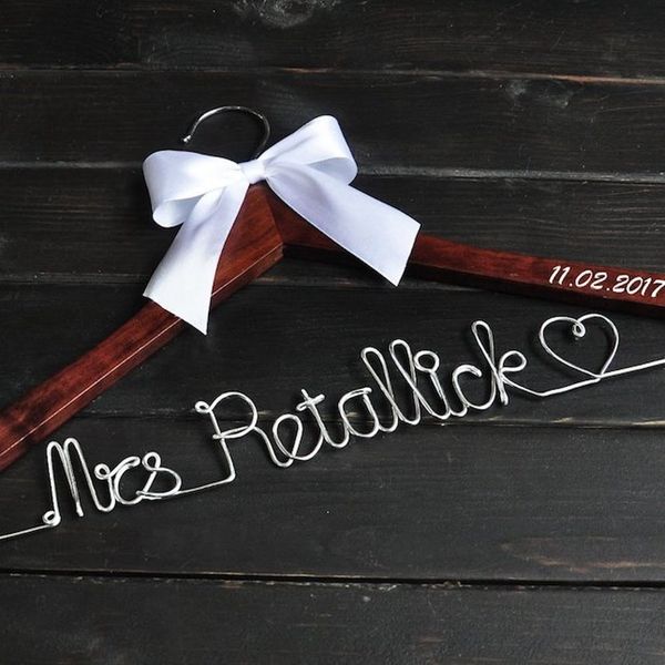 15. Weddinghanger2015 Custom Wedding Hanger ($11): This hanger is hefty enough to hold the very heavy responsibility of keeping the bride’s dress safe before the wedding.
