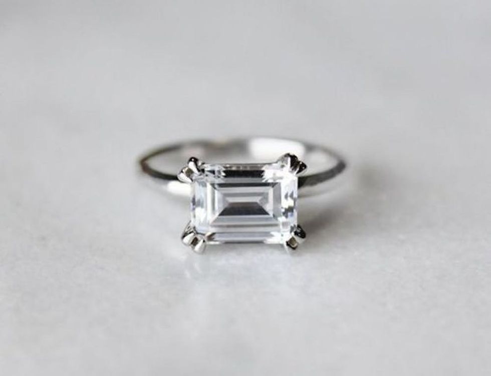 1. An emerald-cut stone with no extra adornments is classic, understated, and perfect for the millennial minimalist bride. The horizontal setting of this stunner gives it a trend-right, fresh twist. (Photo via Pinterest)