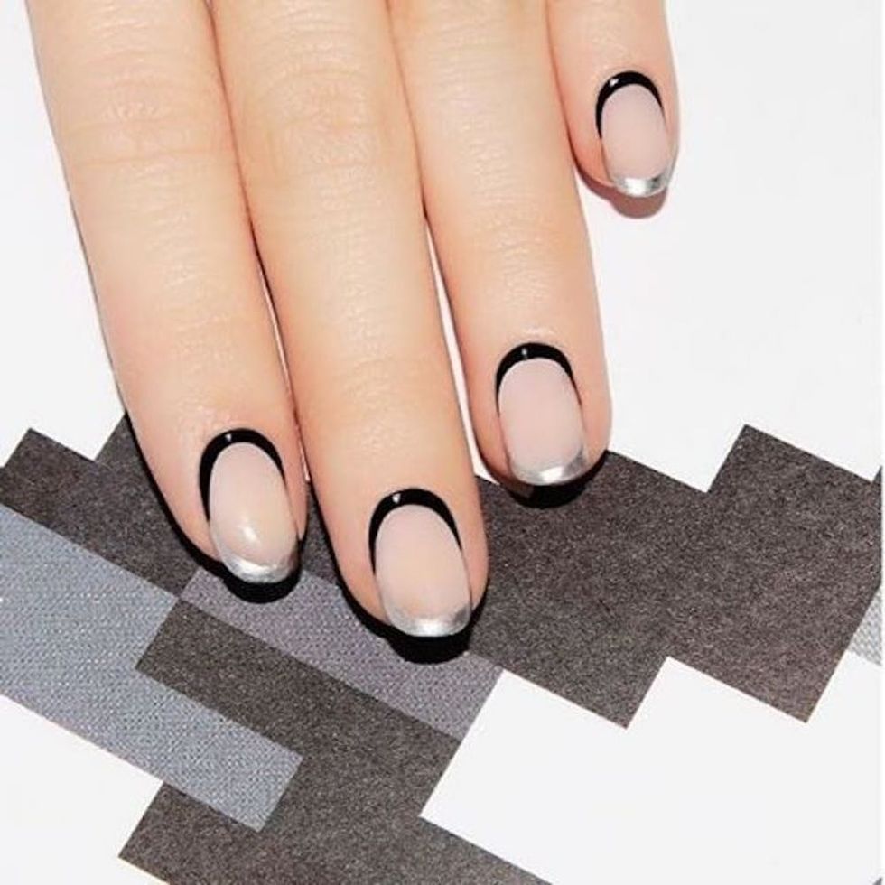 A standard French manicure might feel a little dated, so opt for an updated version with a tonal silver base and a metallic tip. (Photo via Pinterest)