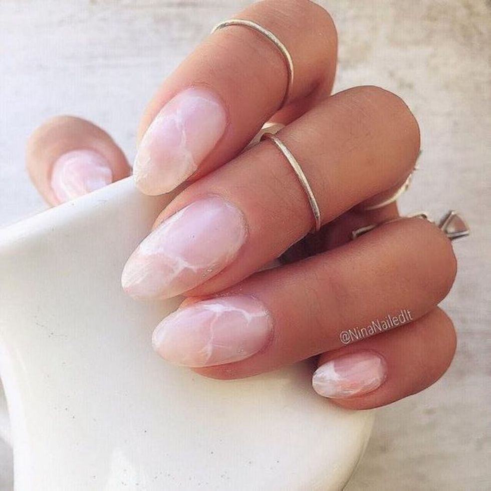 In keeping with the delicate-but-distinct vibe, try a subtle rose quartz mani to take your femme look to another level. Le Sigh. (Photo via Pinterest)