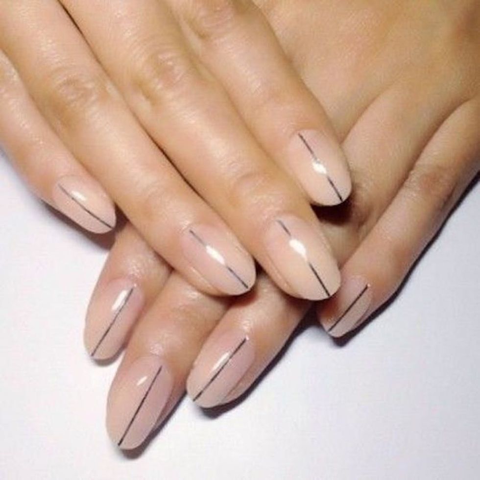 A subtle nude manicure with a single accent line is simple but sharp — just like your bauble. When in doubt, keep it sleek and chic. (Photo via Pinterest)