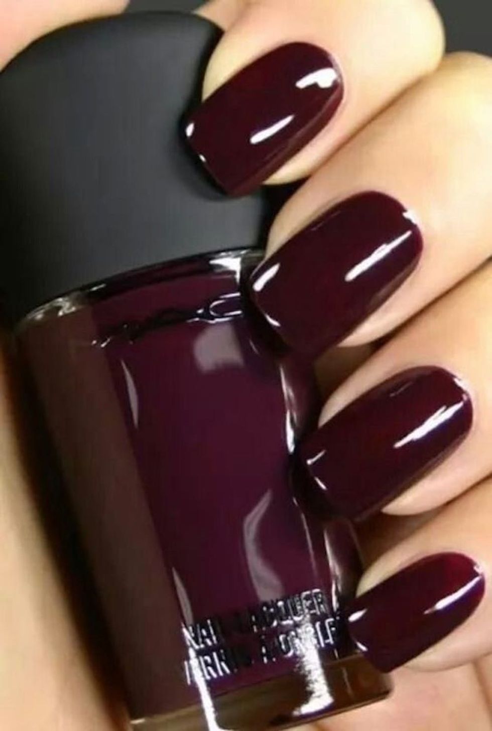 A rich burgundy nail design is just the right touch for your glam rock. Plus, a high-shine polish will echo the bling of your ring. (Photo via Pinterest)