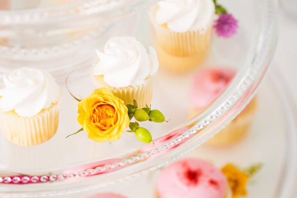 First off, you need some sweets! We filled up a 3-Tiered Serving Tower ($40) with mini vanilla cupcakes, rosewater cupcakes and a few beautiful blooms to create this scene.