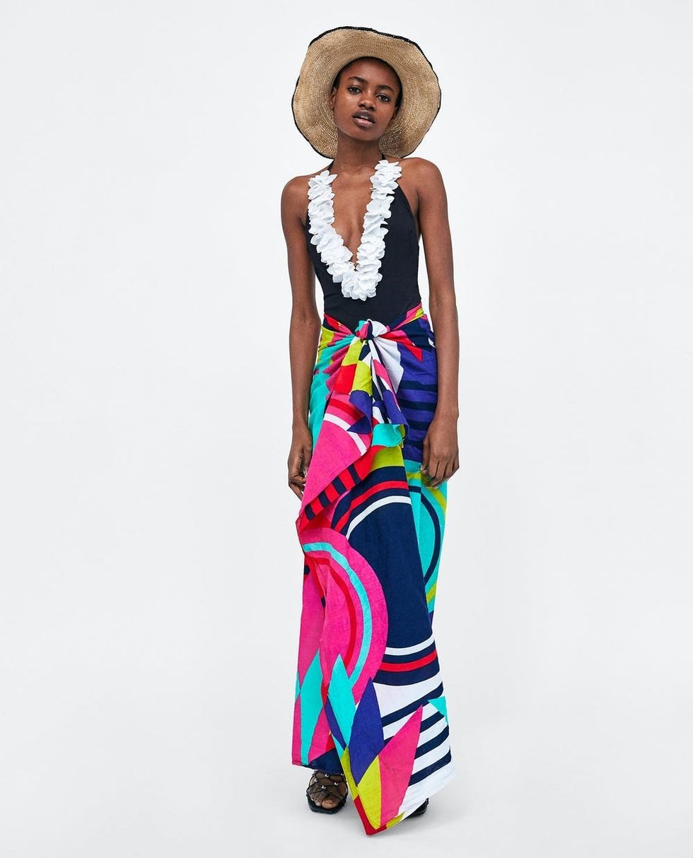2. Zara Halterneck Swimsuit With Floral Detail ($50): Aloha! Team this floral appliqué stunner with a floppy straw hat and a colorful sarong for luau-themed nuptials in Maui.