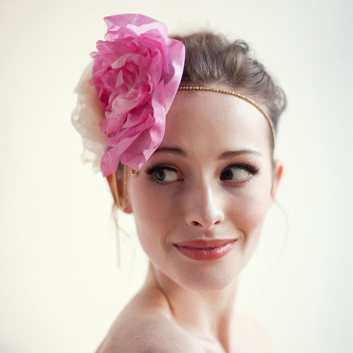 13. Cosette Flower Wrap ($269): Forego the bouquet and wear your pop of color in your hair. Flirty and fun, this silk-flower and gold-rhinestone band is just what you need to make a personal statement. If you’re saving your pennies for the ultimate honeymoon then check out this awesome DIY.