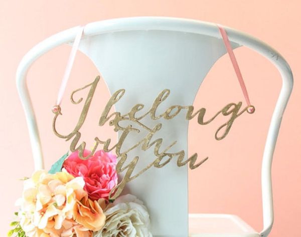 2. Gold Leaf Calligraphy Sign ($94): Make things a little sparkly with these hand-guilded “I belong with you” and “You belong with me” gold leaf calligraphy chair signs inspired by The Lumineers’ song. Also, how cute would these be hung up in the house after the wedding?