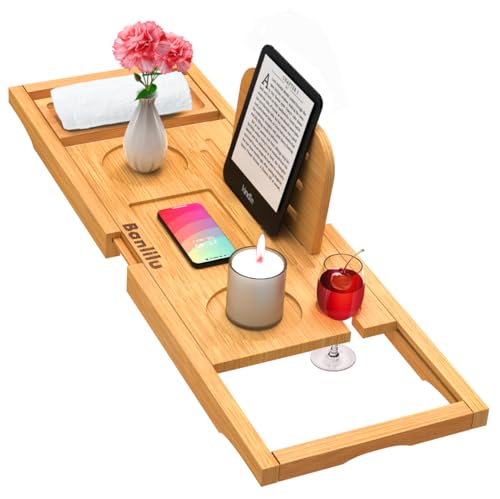Relax luxuriously with a bathtub tray, an expandable caddy that stretches across the tub to hold your book, candle, or glass of wine. It makes bath time feel indulgent and spa-like, letting you sink into the water with everything perfectly within reach.