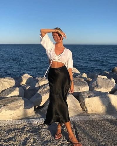 Satin midi skirts are having a moment, and this skirt is a must-have for the season. The satin fabric is soft on the skin and simply elevates your sweaters, tees, or blazers.