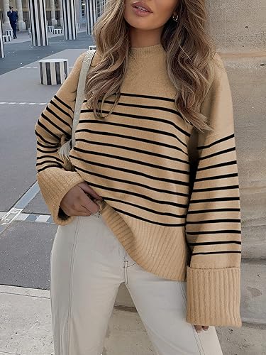 Add a pop of color to your fall wardrobe with this sweater that is complete with batwing sleeves and side slits for movement. The striped pattern adds movement, while the color options allow you to find your perfect match.