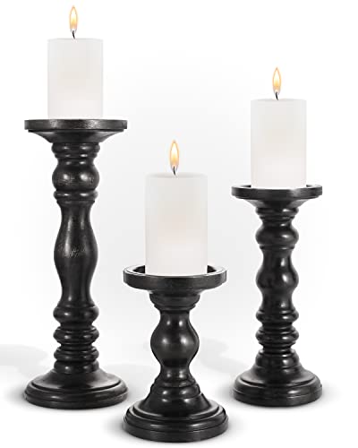 These candle holders are essential for your dinner setting. Designed to fit both traditional and battery-operated candles, this rustic set of wooden pillars adds a gothic touch to your table scape.