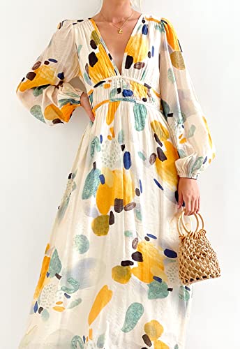 Step into bohemian bliss with this printed dress. This stunning V-neck maxi dress combines the free-spirited charm of boho style with an elegant touch. Crafted from soft and comfy fabric, this dress is designed for long-lasting wear, so you can look fabulous while feeling comfortable all day long.