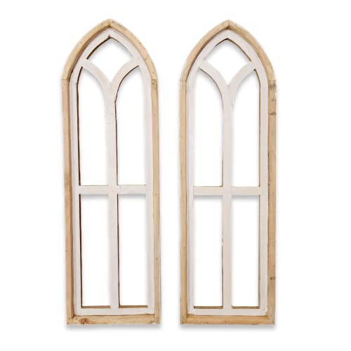 Add architectural interest to any wall with this set of hand-crafted wooden window arches. Their ivory rustic finish and cathedral shape suit farmhouse, vintage, or eclectic decor, and each piece is unique thanks to natural wood variations. Use as an accent over a sofa, entryway, or fireplace.