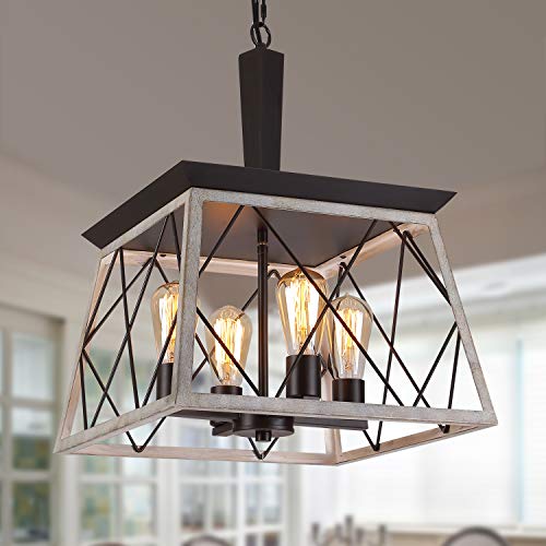 Transform your dining experience with this rustic chandelier, featuring a square iron cage and oak white finish for a country-inspired vibe. Preassembled for easy installation, it works on flat or sloped ceilings and fits both bright and dim lighting needs. Ideal for kitchens, entryways, or any space craving a cozy, vintage touch.