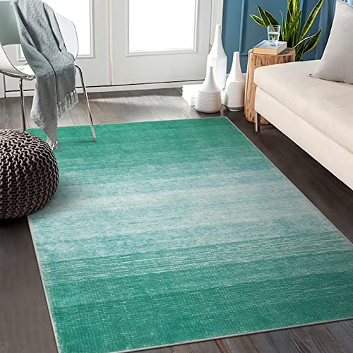 This teal gradient rug brings a contemporary boost to apartments or dining rooms, with a virtually non-shedding pile and stain-resistant fibers. The non-slip rubber backing ensures stable placement, and its machine washable design means you spend less time cleaning, more time enjoying a cozy, stylish floor.