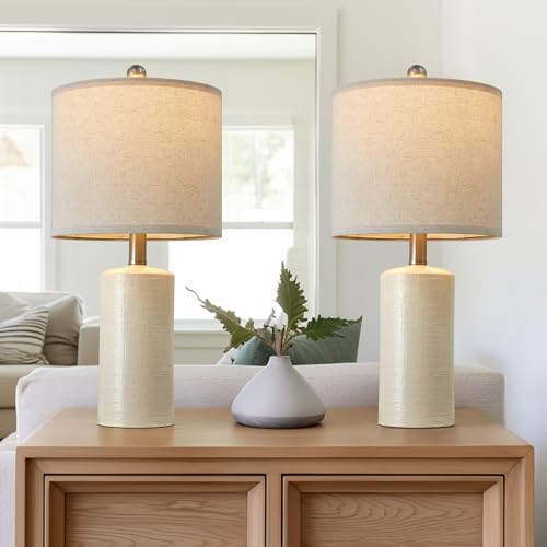 These creamy-white ceramic lamps are sized perfectly for nightstands or end tables, offering a comfortable glow through linen shades. Modern design adds an artistic touch, and safe construction meets high international standards. Enjoy a cozy reading nook or brighten a study without sacrificing style.