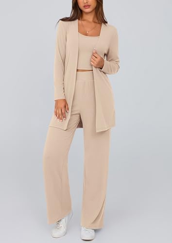 The three-piece lounge set is like your favorite rom-com playlist: cozy, layered, and just right for every scene. With a flowy cardigan, soft tank, and easy pants, it’s perfect for lazy mornings, coffee runs, or surprise plot twists.