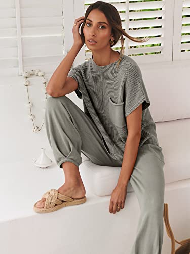 If you are looking to improve your loungewear, look no further than this two-piece set that you can wear for traveling, running errands, or hanging out around the house. It includes cap shoulder, knit top and high-waisted, tapered pants.