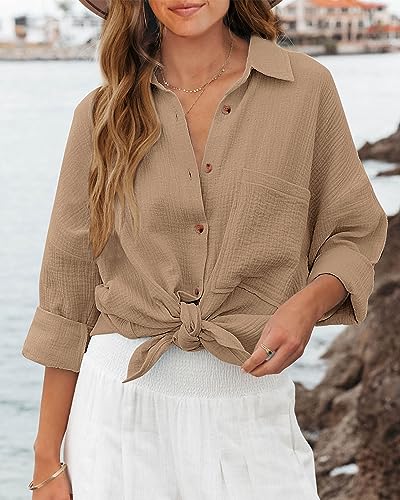 This relaxed button-down blouse feels like a coastal weekend, even if you’re just running errands. The breathable linen blend keeps it light and breezy, while the latte color instantly elevates anything you pair it with, trousers, denim, or even swimwear. Wear it open, tucked, or half-buttoned with a gold chain peeking through for effortless soft-girl cool.