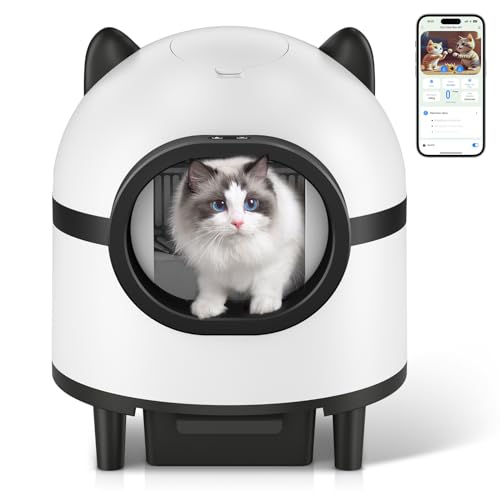 Designed for big cats, this spacious litter box supports automatic cleaning and includes convenient features like a garbage bag roll.