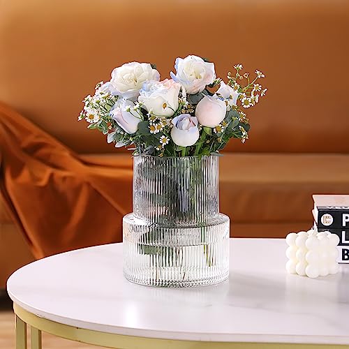 This modern stacked sphere centerpiece puts your standard fluted vases to shame. Turn even the simplest tabletop into a work of art with this luxurious clear ribbed glass vase that looks like a work of art in the middle of your dining table.