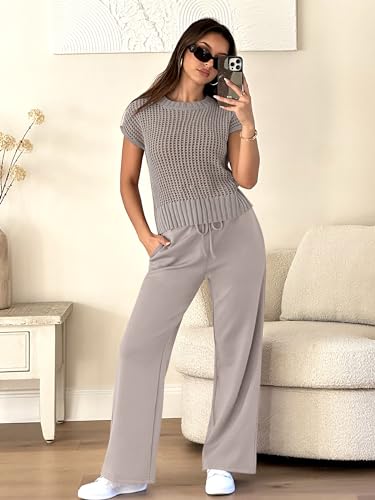 This light khaki crochet set brings soft vacation energy into your daily rotation. The breezy wide-leg pants and sheer knit sweater are both lightweight and lounge-ready, but still polished enough to wear out. Add slides and a messy bun for an instantly chic look.