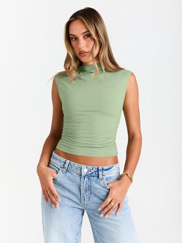 Dress up without overheating in this blouse that has a mock-neck design. The cap sleeves and ruched details create an elevated look that is perfect for personal and professional plans.